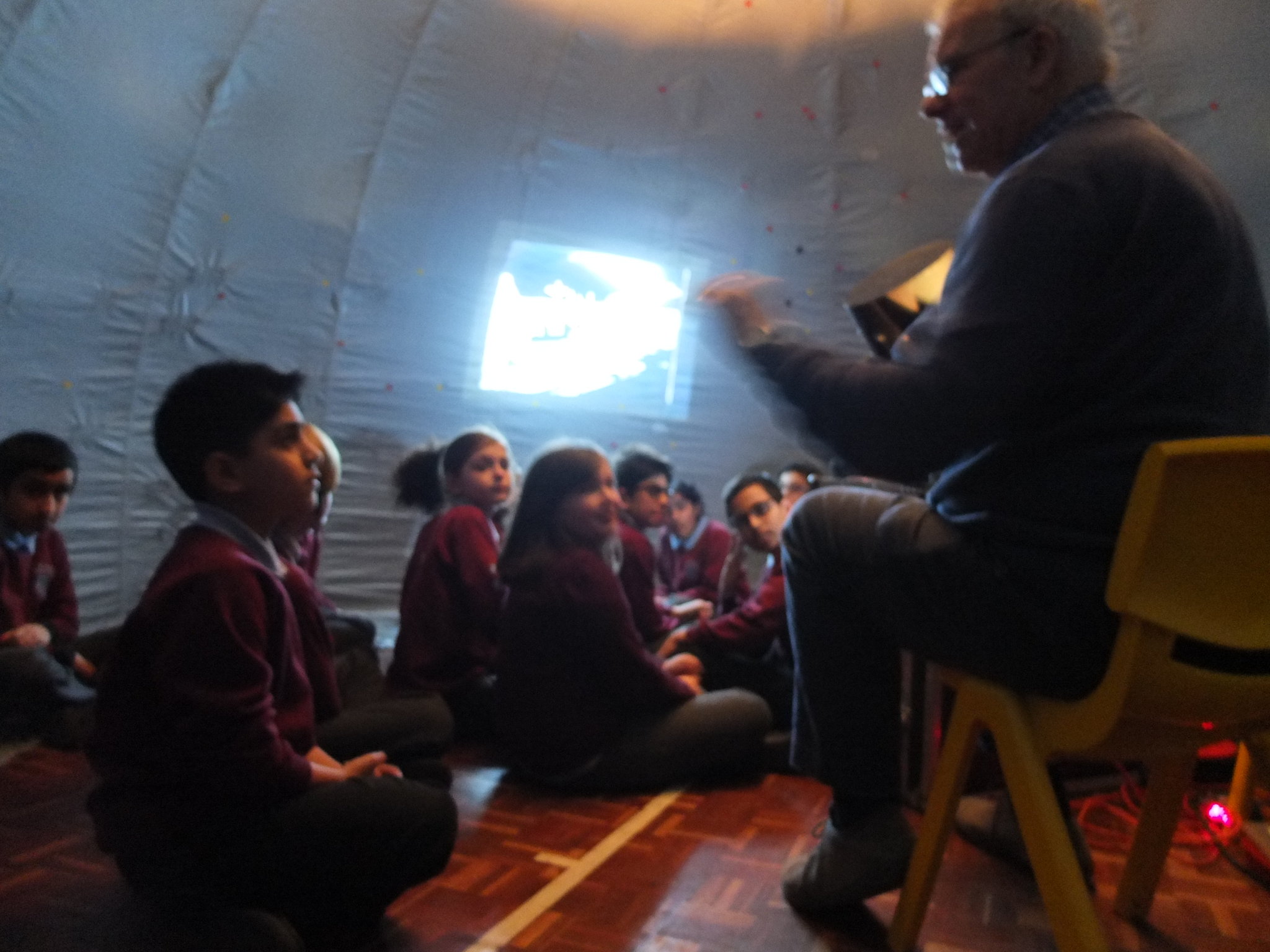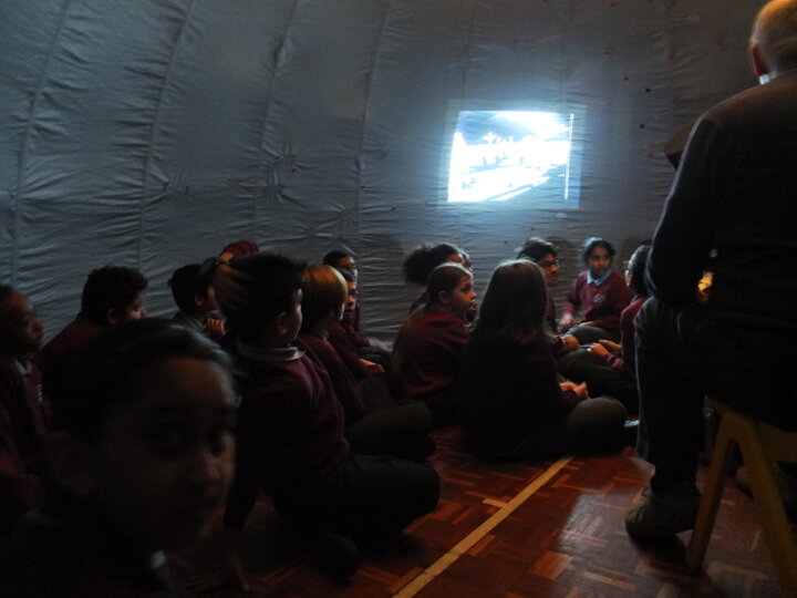 The children had a great time when they had a visit from the Star Dome Planetarium. This was a huge inflatable dome which the children and staff had to crawl into and sit on the floor while the astronomer projected the night sky onto the roof of the dome. They were taught about the night sky, stars and planets and also the moon landings. The children all enjoyed asking and answering questions and their behaviour was excellent.